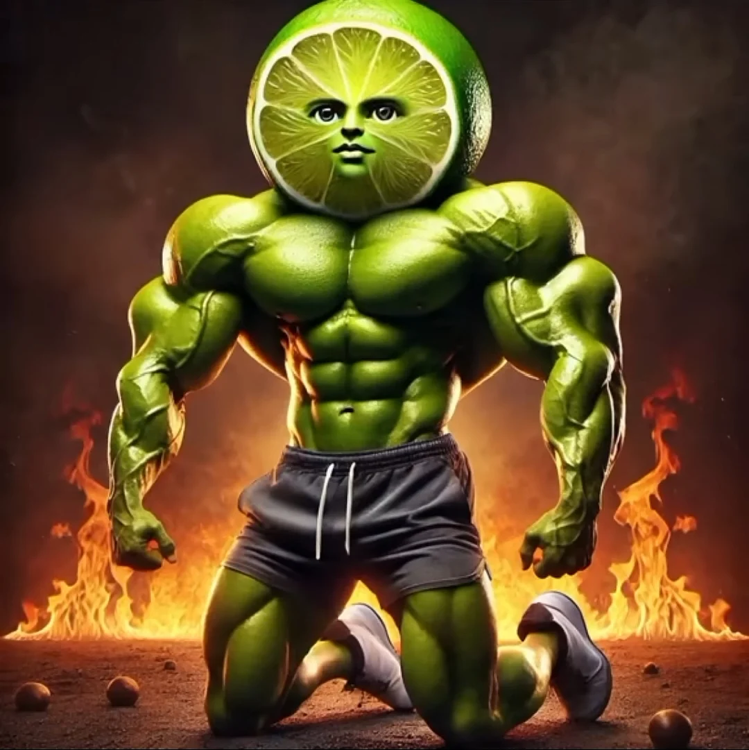 火の中にいるライムの筋肉質の男です。
