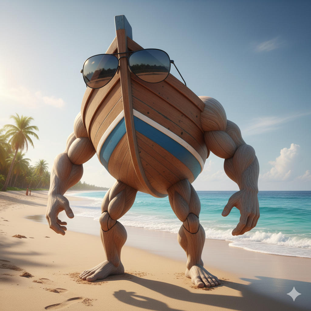 サングラスと筋肉(オーラが強い)を備えた人型のボートです。通常はビーチで見つかりますが、川でも見かけることがあります。