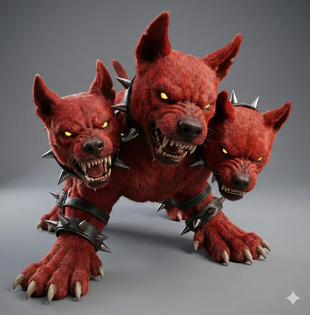 3つの頭を持つ番ケルベロス。ブレインロットではないが、ブレインロットのゲームによくでてくる人気キャラクター。
