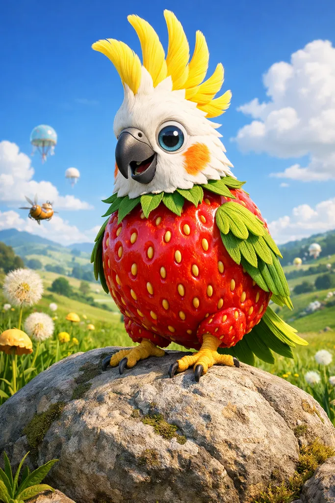 イチゴのインコ。パダン・ルンプット・インダ・ディ・シャン・ハリを訪問します。
