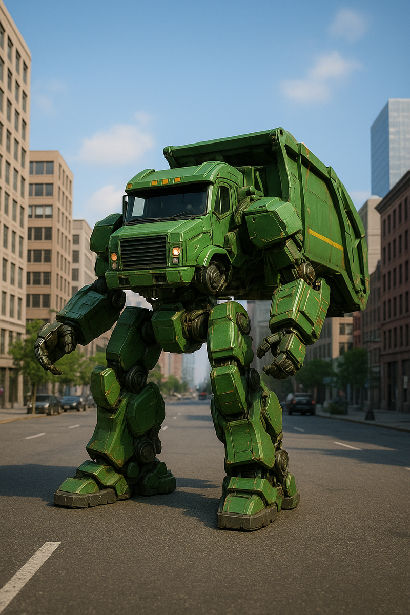 ゴミ収集車であり、頭も顔もないことを除けば、トランスフォーマーのような生き物です。