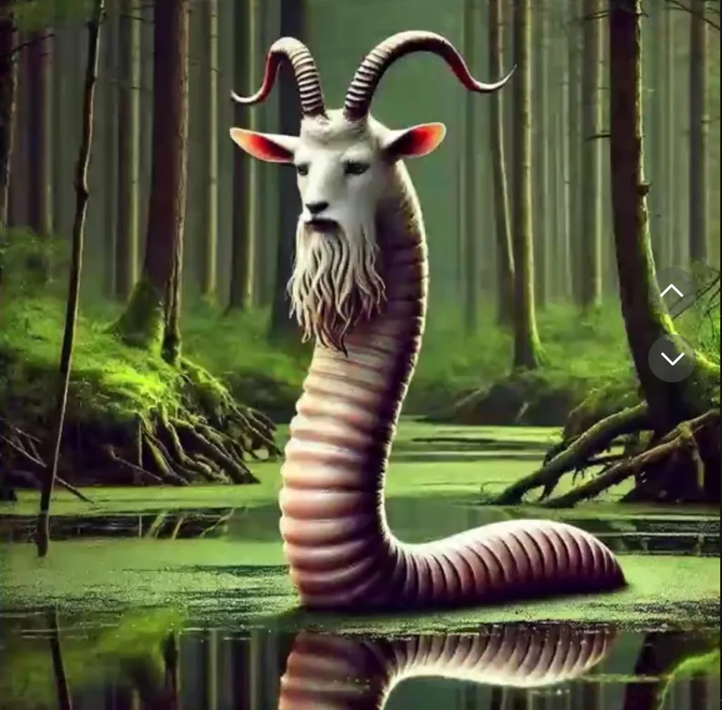 イル・サクロ・カブロスパゲッティ・ミスティコは沼地にいる、ヤギの顔とドラゴンのひげを持つ巨大な白い虫です。