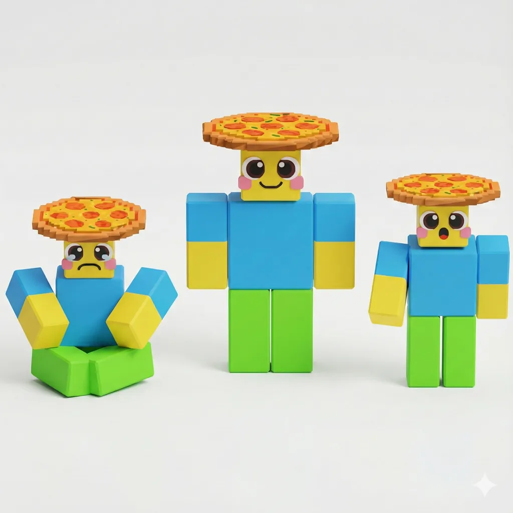 Noobini Pizzaniniの赤ちゃん版のような姿をしている。頭にピザを乗せた ROBLOX Noob アバターに似ています。