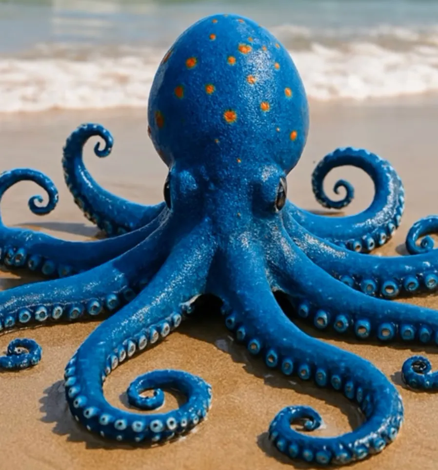 砂浜にしかいない青いタコ、テンタコロ・テクニコは、なぜか物を修理します。