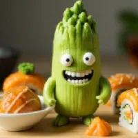 わさびをモチーフにしたキャラクター。辛いものが大好き。わさびが大好きで、配達の仕事もしています。町では 「わさび男」と呼ばれています。彼の趣味は寿司に乗ることです。
